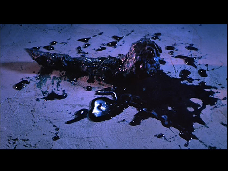 Sans énumérer toutes ces trouvailles composant un univers carné, camé, rappelons encore une fois ces psycho-aliments battant la mesure dans l’assiette comme la veine sur la tempe du drogué. Frankenhooker est judicieusement basé sur les artefacts ( dès la scène autour du ketchup avec la mère de Jeffrey ) de par son sujet, la re-création impossible d’un modèle naturel original, opposé à un hyperréalisme social cauchemardesque. Et bien entendu, toujours ce fameux splatter en champ lexical : que ça suinte, que ça becquette, que ça gicle en signature, dans une ponctuation à la hache jetant un filet de sang spontané sur les livres ou sur des poupées symboles d’une enfance avortée, ou comme le souvenir des règles trop abondantes d’une Jennifer qui n’aurait pas reçu la volée de tampons de Carrie. Bref, exploration par toutes les voies de cette matière qu’Henenlotter écorche, offre à sentir par contact des antagonismes ( une cervelle à même le sol au début de Brain damage ) et qui nous vaut cette prédilection amniotique pour les lieux aqueux – après les cuvettes, dont une recouverte d’un soluté rouge fibromateux, les baignoires…