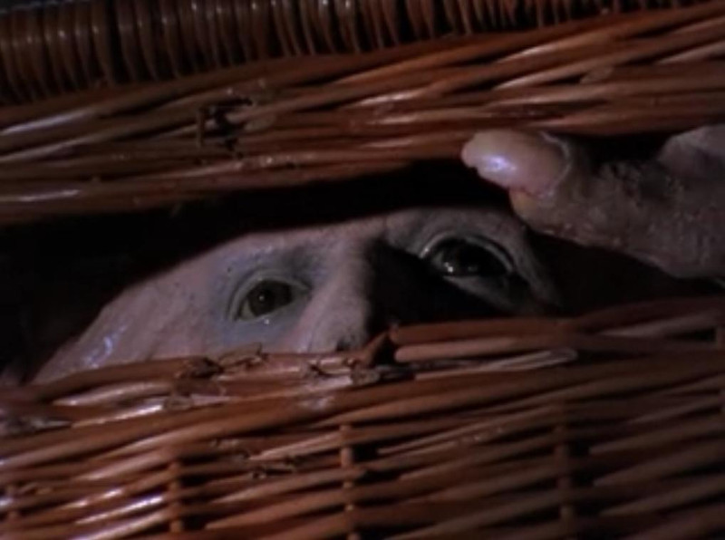 Derrière une loufoquerie de façade, Henenlotter, au meilleur de sa forme, maîtrise parfaitement les codes du suspense. Il suffit pour s’en convaincre de revoir l’entame de Basket case, d’autant plus manifeste que s’y inscrit en lettres de sang le générique. Un balayage vertical du home originel ( qui reviendra souvent ailleurs ), un extérieur sous-éclairé où fait irruption une victime potentiellement innocente. La caméra portée dans son dos. Une branche tremble de façon tout à fait artificielle, contrechamp suranné qui renvoie aussitôt aux terreurs enfantines tout en allumant le sourire du spectateur attendri. Dans ce retour serré à l’humain, saisi par l’inquiétude, le son prend aussitôt le relais. Il est plus intense, constant ; il s’oppose à une musique répétitive et pauvre – autrement plus effrayant que la simple scène nocturne d’agression, vécue cent fois ailleurs – d’où le décalage immédiat entre la pensée horrifique et sa représentation à l’image. Premier plan en caméra subjective qui ballote drôlement mais lentement, insinuant une menace d’ordre animal. Travelling avant porté vers l’homme qui recule et s’affale, refoulé par un nom qui tombe comme un couperet « Frank Henenlotter » ! La seconde scène du prologue se déroule dans la maison et alterne la montée de l’angoisse de la victime et l’incongruité de la menace. En réalité, c’est sa dualité qui la rend plus forte, deux mouvements dans les arbres, deux ombres hors et en la maison, et surtout, qui ne raccordent pas. Un son unique, un râle et donc, un silence, celui de Duane déjà réduit au rôle d’outil dans la machination ourdie. Chaque accélération de la caméra est pesée, tandis que les éclairages creusent le décor expressionniste. Comme dans une vieille série B ( Castle…), le personnage tire en gros plan vers le spectateur, ou plutôt vers ce qui est tapi derrière notre épaule. Identification qui ne sera rompue que par un coup de griffe surréaliste. Une patte artificielle arrache cette apparence de film de genre calibré, comme la décennie précédente en pondait à la chaîne. Défiant la logique, le visage sanguinolent remonte dans le champ. Au mépris des rugissements effroyables, la fin d’un gant en caoutchouc vient mourir sur le bord inférieur du cadre. On ne saurait crier plus fort sa différence et définir une touche faite de sérieux et d’hilarité étouffée. Henenlotter vient d’exposer l’axe principal vers lequel tendent ces déplacements : la scène close où s’opère la monstration. Le naïf, le fauché et le vulgaire se conjuguent pour créer dès ce moment un univers intérieur plus excitant que tous les extérieurs et défiant toute ambition de réalisme. Un cinéma libertaire.