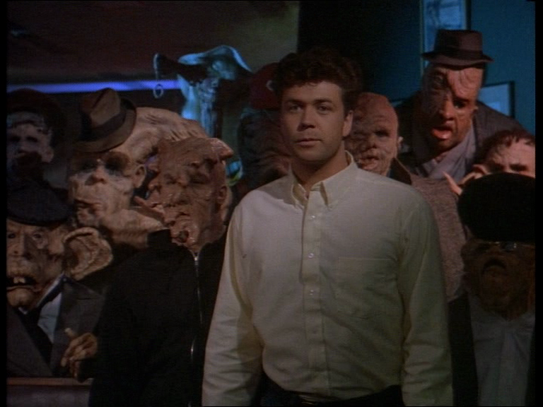 La dialectique est encore de mise sur le plan narratif. D’un côté, l’expression de la normalité, la folie douce, le trauma atténué. Voir à ce titre le flash-back traité en rupture, comme un procédé archaïque dont l’irréalisme quasi onirique et la naïveté influenceront nombre de créateurs du genre. Le visage lisse de cette normalité sera celui de jeunes premiers : Kevin Van Hentenryck / Duane, James Lorinz / Jeffrey, Rick Herbst / Brian ( et même son frère, Gordon Mc Donald / Mike ), Anthony Sneed / Batz. Tous potentiellement sains mais qui dévoilent une part de folie plus ou moins consciente, cette moitié obscure de leur psyché : Kevin Van Hentenryck et son air ahuri puis psychotique, le génie de la médecine de Frankenhooker et sa petite lueur vicieuse, Brian qui accède à un nouveau statut de grand masturbateur en s’enfermant dans une jouissance solitaire, envers lunaire de l’épuisement suicidaire causé par la tumescence de Batz. Henenlotter himself définit également Charlee Danielson / Jennifer comme « the girl next door ». Enfin, une pensée pour Mamie Ruth / Annie Ross et sa permanente de talk show télévisé. Ces physionomies plutôt banales sont nécessaires à entretenir l’angoisse, ce malaise qui contrebalance par exemple l’humour loufoque et débridé d’un Elmer. Car de l’autre côté, c’est très vite le paroxysme de l’horreur ou du mauvais goût. Pour les seconds rôles, le casting dessine au contraire un typage précis fait de trognes ou de carrures, peuplant les meutes d’Henenlotter d’une famille d’acteurs familiers : Joseh Gonzales incarne dans Brain Damage l’homo sous la douche façon Cruising, puis le maquereau et dealer Zorro ; Jan Saint, le forain de Basket case 2 et le prêcheur de Frankenhooker ( le cinéaste lui dédiera The progeny ).