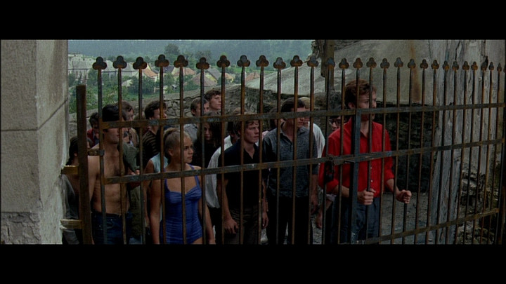 Jancso se place toujours dans le sillage de Balâzs. « Pour ce voyageur errant, le monde est un cosmos homogène de l’étrangeté à travers lequel il sait flotter sans rien toucher. Les objets ne lui opposent aucune résistance » 6. « Peut-on connaître le monde ? » est d’ailleurs une des premières questions énoncées par les jeunes.