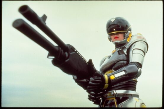 Remise en contexte sémantique : qu’est-ce que le « V-Cinema » ? Abréviation de « vidéo-cinema », le genre désigne ces films qui ont, entre la fin des années 80 et le début des 90 au Japon, esquivé la sortie sur grand écran pour inonder directement la télévision du salon. Les salles désemplissent, les vidéoclubs deviennent les nouveaux hotspots de la cinéphilie et voilà que la Toei flaire la bonne affaire. Le studio investit sur des formats plus courts, irrévérencieusement burnés – des jolies filles, des gros pistolets -, et puis surtout produits à la pelle dans un esprit sériel : jusqu’à quatre films par mois. Autre sortie Roboto Films, Crime Hunter: Bullets of Rage (1989) essuiera les plâtres, et c’est dans la foulée que Lady Battle Cop pétarade. « Mais, pourraient rétorquer nos compères classicistes, si ces films ne sont même pas sortis au cinoche, valent-ils la peine d’allumer sa téloche ? » Oui, et c’est même Julien Sévéon qui le dit : « Si [le direct-to-video] signifie en Occident des productions bas de gamme, cela n’a pas le même sens au Japon où les oeuvres V-Cinema sont […] tournées entièrement en 35 mm et restent un terreau de création et d’expérimentation sans pareil, dans lequel de nombreux grands noms comme Takashi Miike ont travaillé ou travaillent encore. » (Le Cinéma Enragé au Japon, Editions Sulliver, 2005). Suivons le guide !