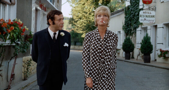 Pour ainsi filer la métaphore, on poursuivra en avançant que Chabrol envisageait ses films à la manière d’un maitre d’œuvre-architecte, non pas tant sur un plan purement narratif (voir comment la mécanique courante de l’intrigue policière est totalement absente de ses films les plus destinés a priori à l’accueillir, comme dans les deux adaptations que sont pourtant Que la Bête meure ou Juste avant la nuit) mais davantage selon une approche globale, la construction d’un monde en soi, reflet d’un univers mental, un milieu et inscrit dans un lieu spécifique. C’est, par exemple, le Saint-Tropez vide et fantomatique qui sert de cadre aux personnages errants des Biches, ou bien encore, le petit village périgourdin du Boucher où se lient par un raccord vertigineux les origines de l’Humanité (grottes préhistoriques) à une histoire de crime et d’amour – souvent indissociables chez le cinéaste, dans une optique atavique des comportements humains – tout cela par le biais d’une épure qui marque la plupart de ses scénarios originaux (autre exemple avec La Femme Infidèle). Cette attention aux lieux le rapproche sans nul doute d’un contemporain et collègue comme Eric Rohmer. Avec ce dernier, il avait d’ailleurs co-signé dès 1957 un essai sur Alfred Hitchcock et partageait le goût (et la compagnie) d’un « personnage » : Paul Gégauff. Scénariste et dialoguiste des Biches et de Que la Bête meure, on retrouve au sein de cette sélection certains traits d’auteur de ce dandy provocateur, notamment dans plusieurs portraits cinglants d’une bourgeoisie qui perd peu à peu pied.