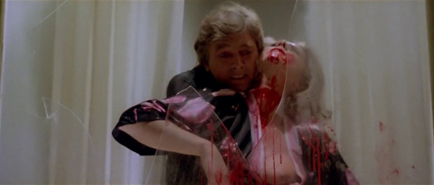 Marcus tenant le corps de Helga Ulmann en sang, les mains plaquées sur la vitre de sa fenêtre ©Les Films du Camélia / Rizzoli Film S.p.a. / Seda Spettacoli