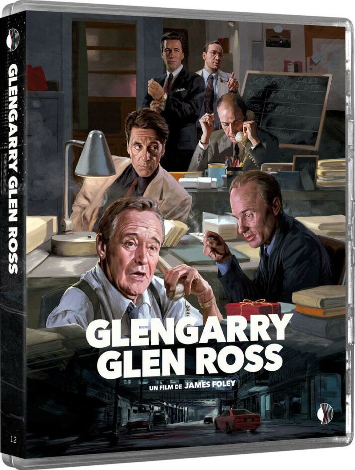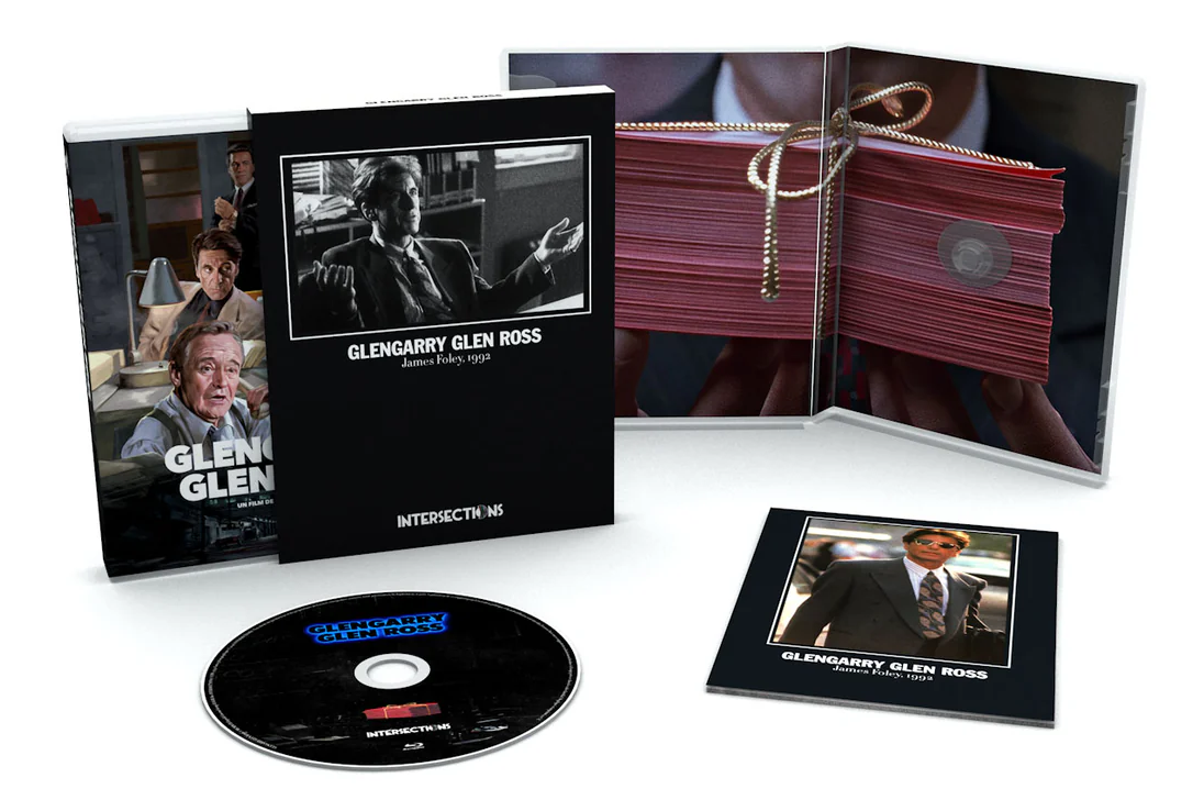 Artisans indispensables de cette réussite, les acteurs en incarnent toutes les facettes et toute la complexité. Al Pacino, électrique, projette ses répliques comme une arme, dans un flux tendu et quasi ininterrompu, qui percute tour à tour ses partenaires. Face à lui, l’impassibilité glaçante de Kevin Spacey répond à l’épuisement tragique d’un Jack Lemmon à bout de souffle, tandis qu’Alan Arkin impose un effacement inquiet et qu’Ed Harris déploie une colère stratégique, déjà contaminée par la mécanique qu’elle prétend contester. Ensemble, ils dessinent une cartographie des positions possibles au sein d’un univers impitoyable, où chacun lutte pour exister sans jamais pouvoir s’extraire du jeu. On remercie Intersections de remettre en lumière cette œuvre respectée et parfois même adulée, qui n’a pas encore la reconnaissance qu’elle mérite. Il s’agit possiblement de la meilleure réalisation de James Foley (avant une suite de carrière beaucoup plus inégale) et de la meilleure adaptation de David Mamet. L’édition proposée contient un très beau master haute-définition issu de la dernière restauration 4K du film. Elle s’accompagne d’un livret de vingt-huit pages comprenant un essai de Guillaume Orignac (qui est également présent sur une passionnante analyse vidéo) et une interview d’époque du réalisateur par Christophe Gans. On retrouve plusieurs entretiens dont un avec Joe Mantegna, l’interprète de Ricky Roma sur les planches (joué pour le grand-écran par Al Pacino) qui revient sur son parcours, sa rencontre avec David Mamet et son Tony Award pour ce rôle avant d’avouer n’avoir jamais vu l’adaptation en entier. On peut également apprécier un long échange avec James Foley qui revient sur son expérience avec une certaine franchise et générosité. Un commentaire audio du réalisateur décédé mais aussi de Jack Lemmon sont aussi disponibles. Sur un mode ludique, on invite à savourer Trailers From Hell avec John Landis commentant la bande-annonce ratée qui tente de faire passer Glengarry Glen Ross pour un film de casse. Du très bel ouvrage.