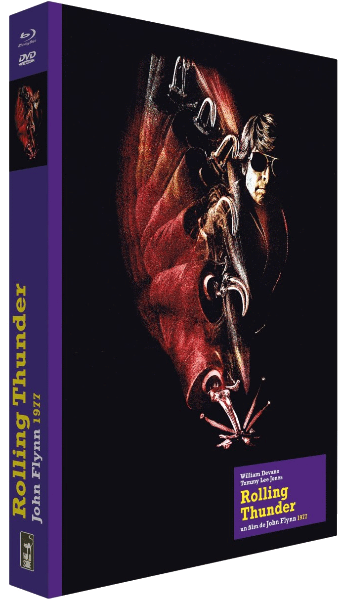 Comme d’habitude avec la collection édition prestige (Blu-Ray + DVD + Livre) de Wild Side, l’édition de Rolling Thunder ne manque pas d’intérêt. Si l’entretien avec Linda Haynes, un peu anecdotique n’est pas des plus palpitants, celui avec Lawrence Gordon, le producteur de la Fox, l’est nettement plus pour saisir tous les tergiversations et autres déboires qui menèrent au rachat du film par l’AIP. Il est plein d’entrain pour évoquer la fameuse projection test, mais nettement moins à l’aise lorsqu’il s’agit d’évoquer l’éviction de Schrader. Heureusement l’excellent livre de Philippe Garnier «un film prématuré » revient pas à pas sur les origines du film et son cheminement. Ayant pu consulter le scénario de Schrader et il a notamment l’occasion d’effectuer des comparaisons, de regretter qu’il fut à l’arrivée si édulcoré politiquement, tout en reconnaissant toutes les qualités de la version de John Flynn, en particulier troublant silence qui enveloppe la relation entre Linda Haynes et William Devane. Moins subversif peut-être, mais plus étrange.