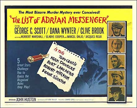 Seulement, le jeu de pistes et la chasse aux fantômes qui constituent le cœur des aventures de Scooby-Doo est ici remplacée par celle, plus classique, d’un assassin en série, véritable as du déguisement. Adrian Messenger, écrivain à succès, meurt dans l’étrange explosion d’un avion. Auparavant, il avait eu le temps de donner une liste à Anthony Gethryn, ancien agent des services secrets, afin de vérifier si les hommes qui y figurent sont toujours vivants. L’accident d’avion se révèle être un attentat et la mort de plusieurs individus de la liste suscite la suspicion de l’officier en retraite. Avec son ami Raoul Le Borg, rescapé de l’avion qui a pu recueillir les dernières paroles de Messenger, il va enquêter afin de découvrir qui a tué le romancier et pourquoi…
