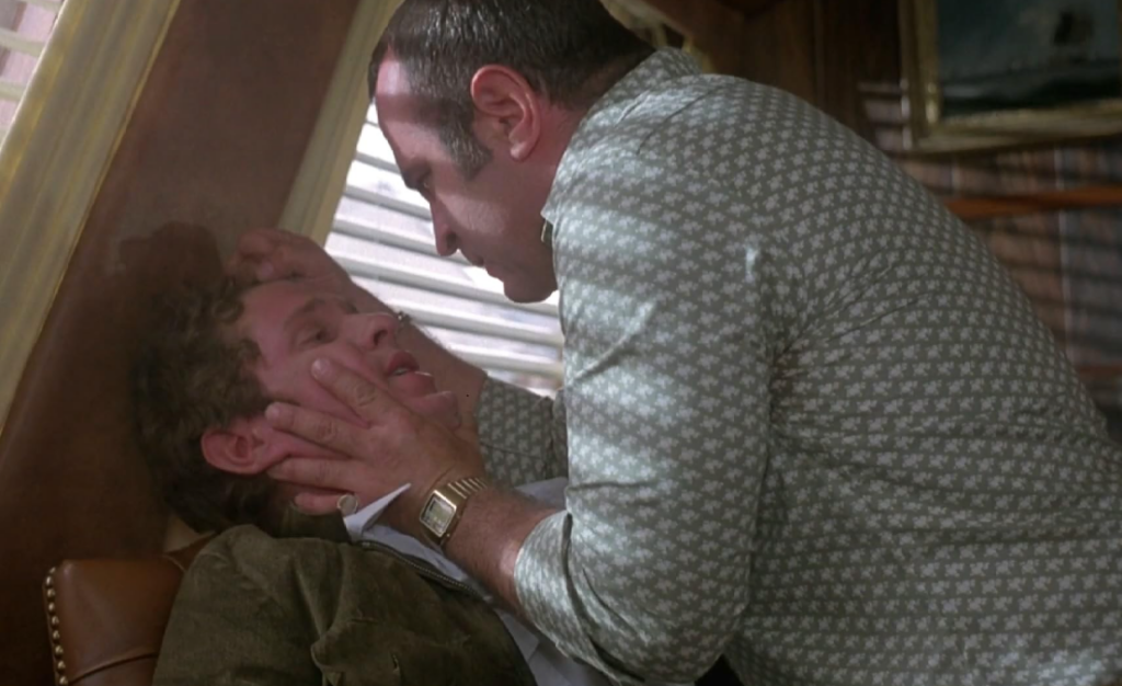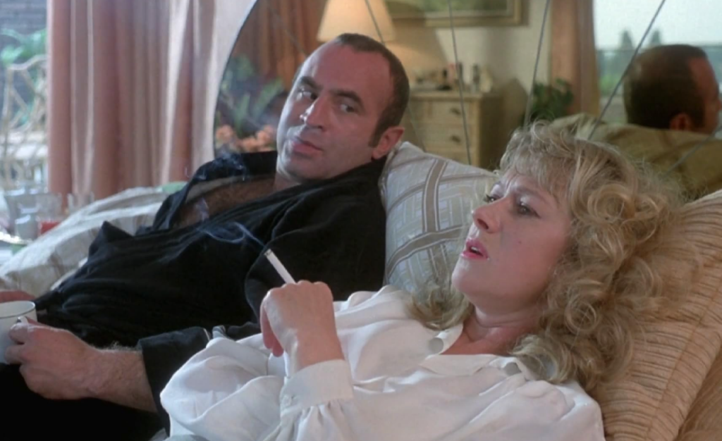 Harold, incarné par un hallucinant Bob Hoskins dans son premier grand rôle au cinéma, se révèle un antihéros complexe, antipathique, bourru et raciste, fidèle aux figures ambiguës du genre. Dès son entrée en scène, il impose d’un même mouvement un charisme animal et la double ambition qui sous-tend le long-métrage. Tout d’abord, brosser le portrait d’un self made man qui a gravi les échelons jusqu’à devenir le parrain de Londres, et situer l’Angleterre toute entière au cœur d’un système économique en perpétuel mouvement. De retour des États-Unis, il espère signer un gros contrat avec des collaborateurs américains (dont l’un est interprété par la légende Eddie Constantine) attirés par ce nouvel eldorado. Cet ancien prolo qui n’a jamais tourné le dos à ses manières rustres, reproche aux yankees de surjouer un snobisme de pacotille. Tourné vers l’avenir, il souhaite en revanche s’acheter une respectabilité de businessman, préfigurant ainsi le Frank White campé par Christopher Walken dans The King of New York. Hoskins prête sa silhouette trapue à ce personnage brut de décoffrage qui ne possède aucun des codes de la bourgeoisie qu’il est contraint de fréquenter désormais. C’est Victoria, sa compagne interprétée par Helen Mirren, qui lui sert de boussole. L’actrice a par ailleurs étoffé elle-même un rôle à l’origine ingrat grâce au soutien de son partenaire de jeu comme le révèle Thoret. De simple faire-valoir, elle devient son éminence grise, capable de gérer les conflits avec diplomatie. L’ancien gamin des rues, lui, fonce tête baissée, aussi dur en affaire qu’impitoyable lorsqu’il réclame vengeance. Dirigeant la capitale d’une main de fer, il est parvenu à se mettre politiciens et policiers dans la poche et s’autorise même à gifler un commissaire en toute impunité. Ce personnage fort en gueule qui s’est fait une place sans jamais être accepté par son nouveau milieu, peut se lire comme une version British de Tony Montana. Et les parallèles avec Scarface ne s’arrêtent pas là.