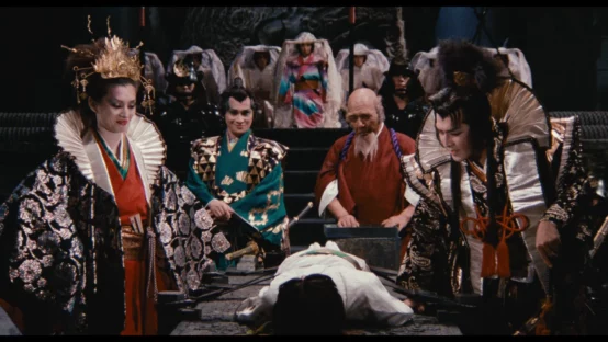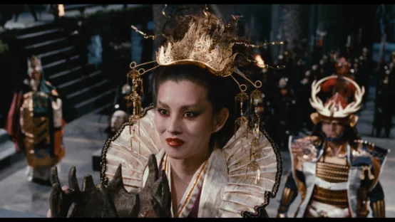 Séduisant en premier lieu par l’ambition de ses décors, costumes et effets spéciaux – dont on notera que ces derniers ont, pour la plupart, étonnamment bien vieilli – La Légende des huit samouraïs, assumant d’offrir un grand divertissement d’epic fantasy, revisite ainsi un argument simple – un groupe de guerriers devra être constitué afin de défaire un ennemi commun – rappelant directement celui des Sept Samouraïs afin d’emmener ses protagonistes (et bien sûr son spectateur) dans une quête au cours de laquelle devront être affrontés des monstres, des sorciers revenus d’entre les morts puis une armée entière, afin de terrasser les forces du Mal.