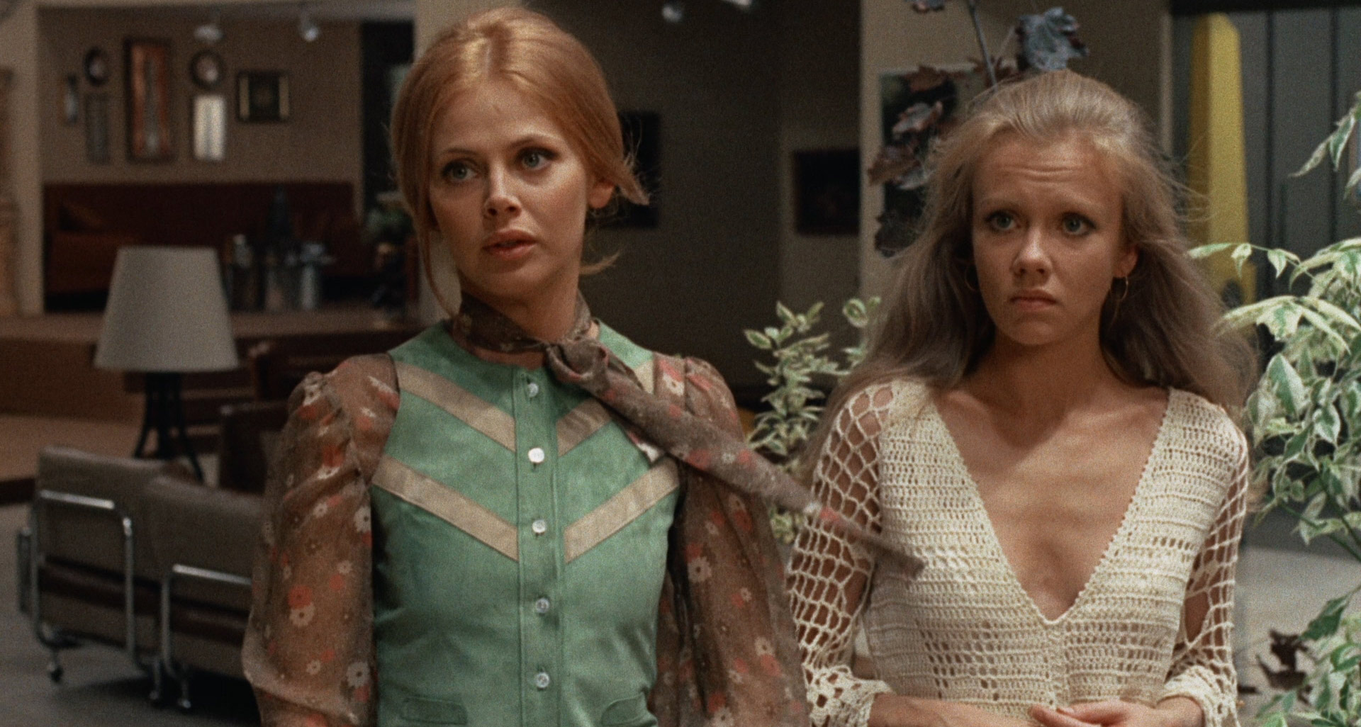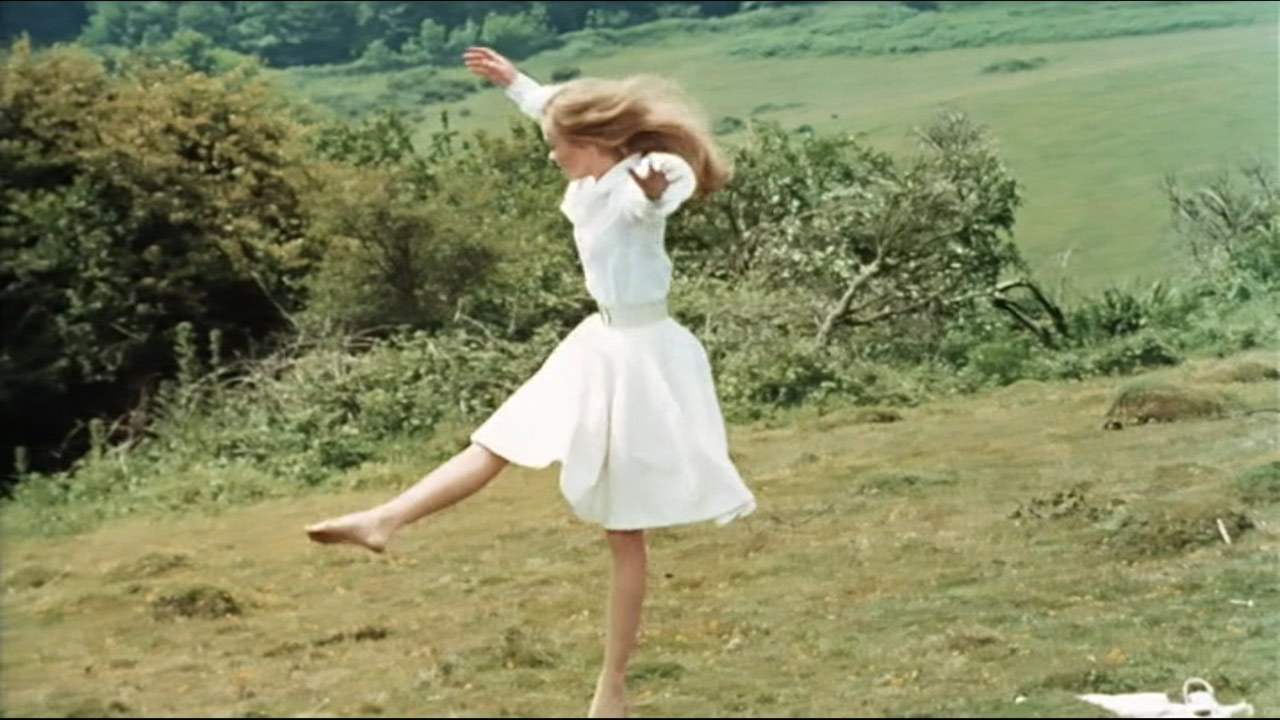 Pour les habitués de Mort sur le Nil, Meurtre au soleil et autres Dix petits nègres, il est presque légitime d’attendre une dizaine de suspects pour un seul assassinat, tous potentiellement coupables. Or, ici, si le dernier tiers sacrifie à une énigme sitôt lancée sitôt résolue, elle laisse très peu de temps d’y réfléchir. Certes nous aurons la résolution, le fin mot de l’histoire. Ces images éclairs du passé ressurgi auront leur explication – comme le rouge de Marnie dissimulant l’évènement traumatique. La conclusion éclairera d’un nouveau regard, incitera à relire différemment les événements, dans une construction qui anticipe bien des années avant sur Shutter Island. Mais plus que la vigueur du coup de théâtre, du twist in extremis, c’est un incommensurable malaise que procure la révélation. Car Endless Night est bien plus un psychodrame tourmenté qu’un suspense policier. Dès les premières images portées par la magnifique partition symphonique de Bernard Hermann, des vagues se heurtent brutalement aux rochers, dans des teintes crépusculaires. L’envolée lyrique symphonique est déréglée par les notes d’un synthétiseur, tel un indice que le ver est déjà dans le fruit. L’inspiration hitchcockiennne paraît d’autant plus évidente que son compositeur fétiche y est invité, dans son versant le plus torturé, celui des amours obsessionnels et maudits de Rebecca, Vertigo ou Marnie. (2). La brèche du questionnement et des névroses est plus que jamais ouverte Sydney Gilliat reprend d’ailleurs à sa manière le fétichisme hitchcockien à travers le motif de la ressemblance : quel trouble en effet lorsque Britt Eckland/ Greta apparaît face à Hayley Mills/Ellie, presque face à son reflet, son double – dont l’attitude inspire néanmoins la méfiance immédiate. Pour la première fois, les deux actrices ont l’air de deux sœurs.