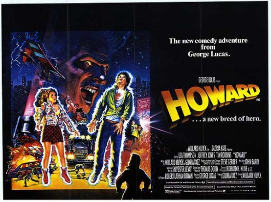 Après le succès du premier Superman, à la fois en avant-garde de la vogue actuelle et teinté d’un grand classicisme hollywoodien, les deux suites ont finalement imposé la vision décalée d’un Richard Lester qui tua presque dans l’œuf sa franchise. Tandis que la Cannon s’enlise avec Spiderman et Captain America, Howard the Duck n’est pas à l’apogée de sa popularité dans le milieu des années 1980, et l’on se demande bien comment George Lucas s’est retrouvé à positionner ses deux scénaristes d’American Graffiti sur ce film. A la recherche sans doute d’une branche « production » qui soit aussi lucrative que celle de son ami Steven Spielberg, le cinéaste qui a alors besoin d’argent lorgne vers des succès comme Gremlins ou Retour vers le Futur et une potentielle nouvelle franchise.