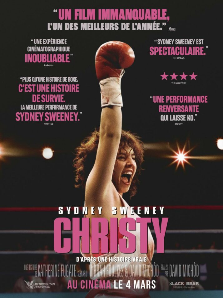 Lors de sa sortie aux Etats-Unis en novembre dernier, Christy, réalisé par l’excellent réalisateur australien David Michôd, a subi une impressionnante débâcle commerciale, empochant péniblement deux millions de dollars de recettes pour un budget avoisinant les quinze millions. Nous pourrions nous interroger sur les raisons d’un tel désamour de la part du public, certainement hostile à l’actrice principale (et co-productrice) du film qui fit alors parler d’elle pour une publicité polémique et, avouons-le, peu finaude pour la marque de jeans American Eagle, campagne d’affichage dont Sydney Sweeney ne s’est jamais dédouanée. Dommage pour les qualités intrinsèques de ce biopic fondé autour de la figure de Christy Salters Martin, pionnière de l’avènement médiatique de la boxe féminine dans les années 80, rise and fall qui adopte dans un premier temps tous les atours d’une certaine approche hollywoodienne du genre avant de s’en éloigner en affrontant de plein fouet les zones très obscures de son récit, faisant moins du succès de son personnage un biais vers l’émancipation qu’un espace de réclusion cloîtrant tout autant son corps que son âme.