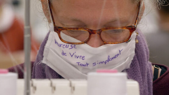 C’est l’histoire d’une utopie bizarre, dans un monde tout aussi étrange. Mars 2020, nous sommes en guerrrrrreeee (dixit Manu le boss). Toute la France est confinée. Toute ? Non, un petit village gaulois du côté du bassin d’Arcachon résiste et décide de prendre le taureau par les cornes, ou du moins par le masque, et monter de toute pièce une usine pour fournir malades et hôpitaux en dispositifs AFNOR en tissu, alors même que la délocalisation à outrance avait privé le pays de cette ressource précieuse. Recrutant à tour de bras plus de 250 coutieres et couturiers, parfois sans expérience, mais avec la volonté farouche de bien faire et de participer à l’effort national pour fournir la région en cette précieuse ressource, Libero (quel prénom) se dresse face à l’adversité et remue ciel et terre pour réussir à fournir la commande de la région.