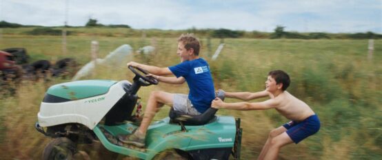 Filmant le quotidien de ses protagonistes sans jamais intervenir directement – personne ne s’adresse à la caméra et la voix du réalisateur n’est pas entendue au cours du film – Hugo Willocq, signant ici son premier long-métrage, invite d’abord le spectateur à se mettre dans la peau de Paul et de son frère, Germain – montrant notamment l’insouciance avec laquelle ils jouent, sur la ferme et alentour, afin de passer le temps – et ainsi savourer avec eux l’atmosphère (faite de repos, de rire et de chaleur souvent écrasante) des vacances d’été.