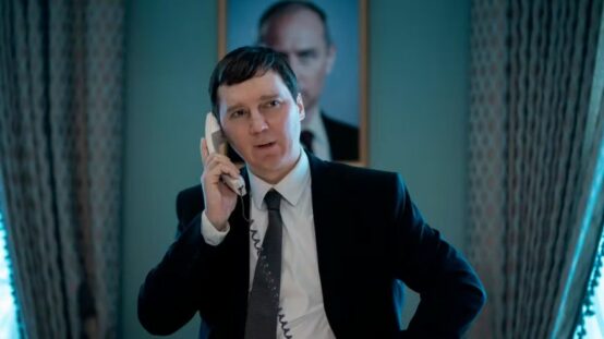 Nous pourrions comparer Le Mage du Kremlin à la fameuse série politique House of Cards (2013-2018) ou à la ribambelle de fictions d’alcôves politiques qui la suivirent par sa façon de décliner à l’envi le fonctionnement du monde politique, les tractations et autres intimidations entre figurines de pouvoir, et la densité rhétorique des conversations alimentant le récit (allons plus loin : la conversation est récit). Olivier Assayas choisit d’aborder le genre en le réfrigérant totalement, en organisant le « chaos » et la « rage » (pour reprendre les termes cités plus haut) dans le calme le plus olympien, celui-là même de Vadim Baranov. Si cela peut avoir un véritable pouvoir didactique (exposer sereinement les causes et conséquences de l’Histoire récente russe pour mieux comprendre le Poutine dictatorial contemporain peut s’avérer fort instructif), le revers de la médaille se trouve être le caractère parfois fastidieux d’un verbiage constant, générant une forme d’ennui poli, cet usage de la parole n’étant pas accompagné d’un geste formel fort (ce qui était au contraire le cas de House of Cards, fiction exemplaire), Le Mage du Kremlin se contentant d’un classicisme frisant l’académisme, ceci jusque dans sa structure narrative (un journaliste joué par Jeffrey Wright conversant avec un Baranov rangé des voitures et racontant son passé alors monté en flashback : dispositif élimé jusqu’à la corde).