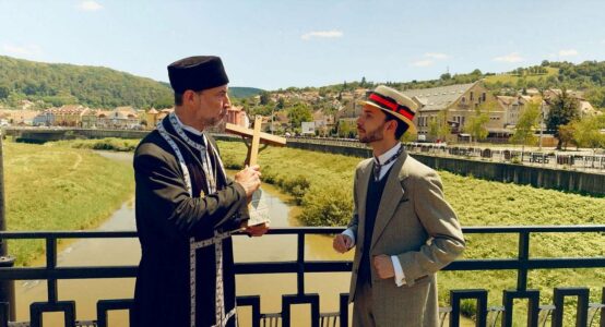 On sait combien l’impayable réalisateur aime jouer avec et de son médium, que ce soit à travers le montage (toujours assuré avec virtuosité par l’excellent Cătălin Cristuțiu), le mélange d’images de différents types et provenances (des archives historiques aux images avec filtres générées pour les réseaux sociaux), la superposition de différents continuums, du réel et du réel mis en scène, l’imbrication de récits, le choix de l’outil utilisé pour filmer, son placement et ses mouvements, l’usage du texte… On vous passe la description exhaustive de la filmographie, aussi diverse et variée qu’éminemment reconnaissable, de Radu Jude, d’autant qu’on l’a déjà évoquée dans la critique consacrée à Kontinental ’25, mais que sa vitalité effervescente (particulièrement débridée depuis l’impayable Bad Luck Banging or Loony Porn, Ours d’or de Berlin 2021, suivi de cinq courts-métrages, un segment de film collectif et quatre longs métrages, dont Kontinental ’25 mais aussi l’exaltant N’attendez pas trop de la fin du monde en 2023… pour arriver à Dracula) ne vous trompe pas : tout le travail de Jude (qui vient de faire l’objet d’une rétrospective organisée par le Centre Georges Pompidou) est d’une précision diabolique, et sa vision (de la Roumanie, de l’Histoire, des hommes, des différentes idéologies où ils sombrent, de la présence des nouvelles technologies dans nos vies modernes…) d’une stupéfiante acuité.