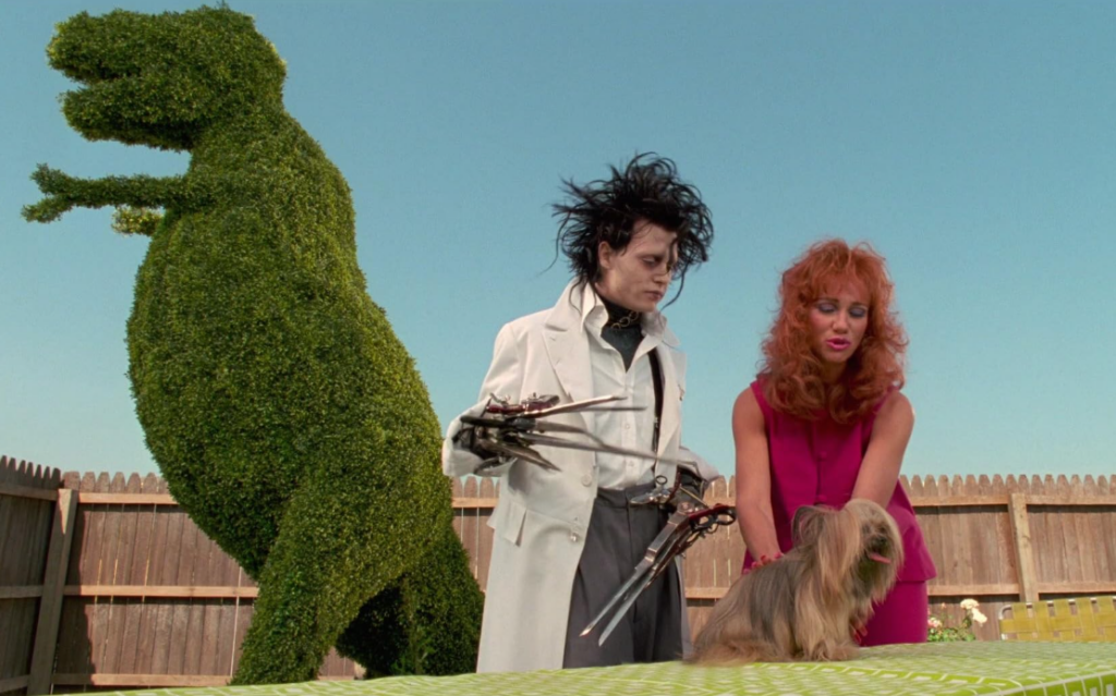 Dans un château niché au sommet d’une colline vivait un génial inventeur qui créa Edward. Bien que gratifié d’un charme irrésistible, ce dernier n’était pas tout à fait parfait. La mort soudaine de l’inventeur l’avait laissé pourvu de ciseaux acérés en guise de mains. Edward vivait reclus dans l’obscurité jusqu’au jour où la douce demoiselle Avon lui fit goûter aux joies d’un véritable foyer.
