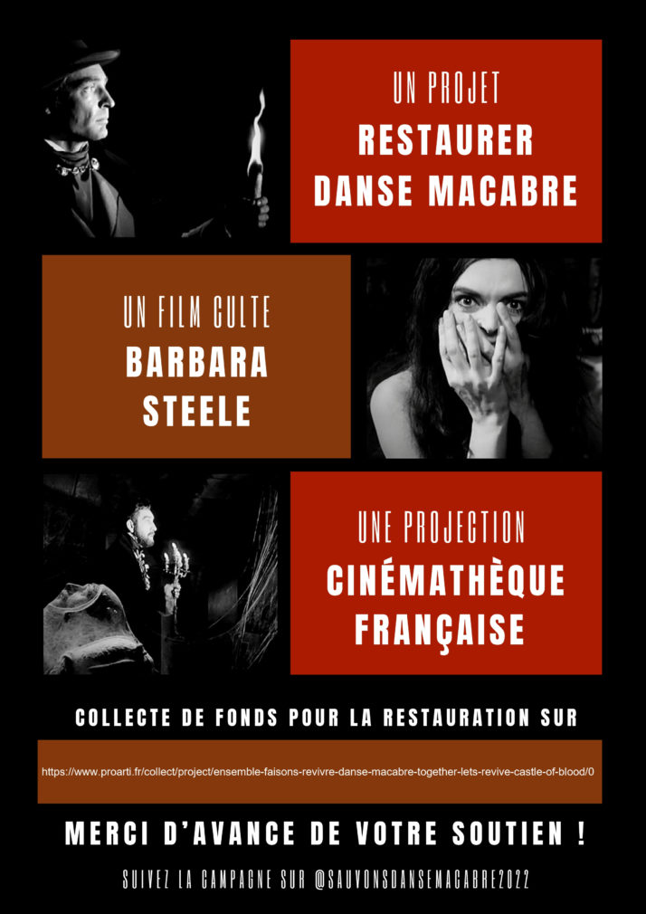 c’est avec joie et honneur que nous vous annonçons le lancement de la collecte de fonds destinée à restaurer le chef-d’œuvre d’Antonio Margheriti DANSE MACABRE avec Barbara Steele.