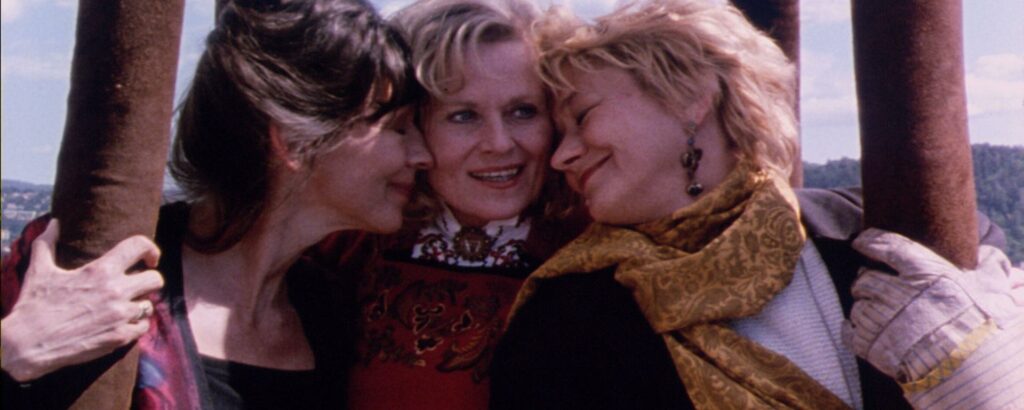 La trilogie s’achève ainsi, en montgolfière, dans une suspension inquiète, les trois femmes regardant, en bas, l’effritement des démocraties, la montée du racisme, et peut-être même la maladie s’inviter dans la nacelle – et n’auront, on le sait, que leur amitié indéfectible pour affronter cela. Mais tout cela, seulement après la dernière crise du trio, passage obligé des trois Wives, mais surtout clôture de la boucle avec Husbands : Heidrun écrit depuis longtemps un roman, dont l’histoire, elle ne le sait pas encore, est scrupuleusement la même que celle d’un auteur autrement plus reconnu qu’elle. Mie n’ose pas lui dire, mais Kaja, toujours la plus cruelle dans les conflits, finit par lui jeter au visage – et Heidrun d’envisager de reprendre la cuite, pour de bon. Alors, Mie finit par la rassurer, en lui disant qu’après tout, on s’en fout bien qu’un homme ait écrit une histoire similaire, et que le point de vue féminin sera d’autant plus riche en regard, et même meilleur. Que les histoires ne sont l’apanage de personne. Revanche, et bouclage, à l’issue de cette trilogie et de cette cinéaste, oubliée pendant cinquante ans, et qui sort enfin chez nous.
